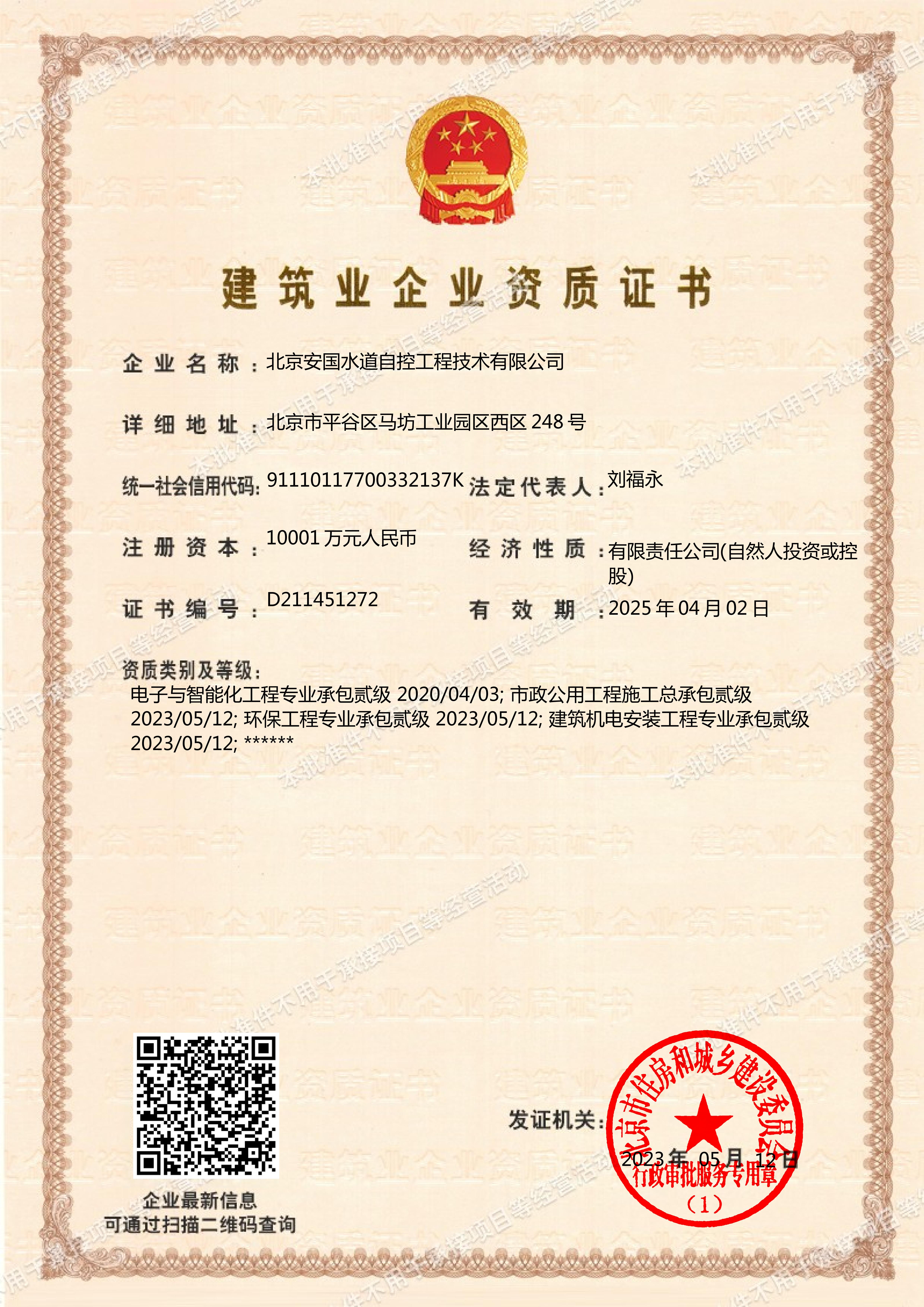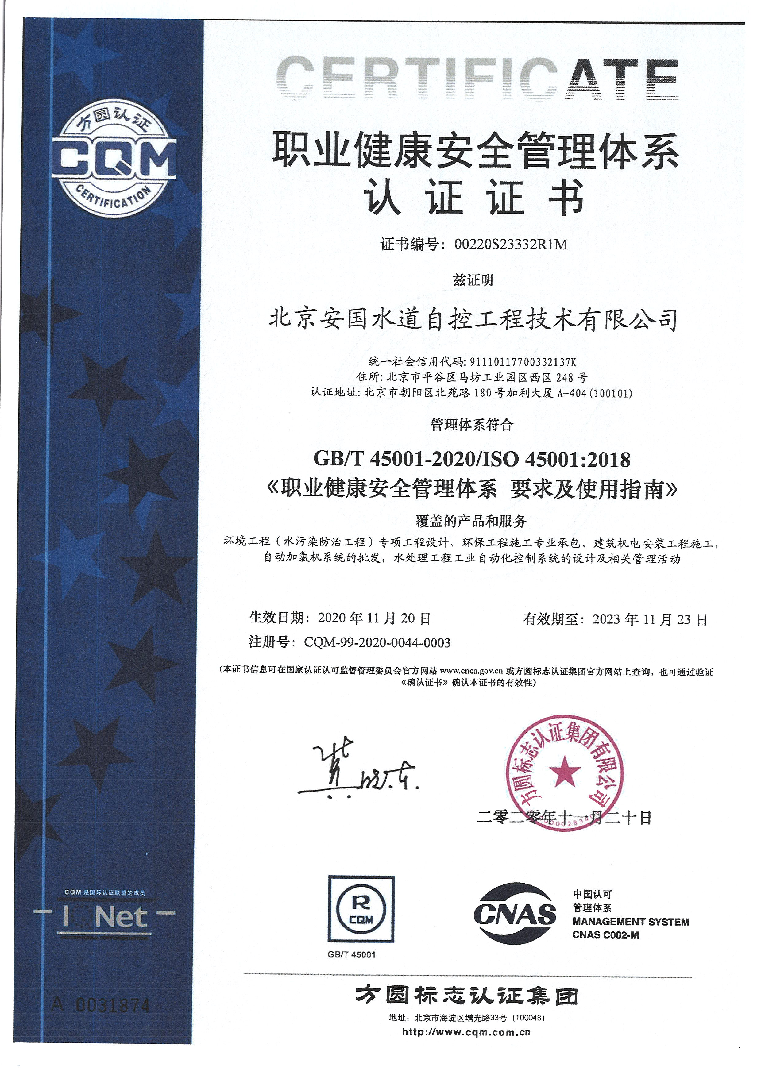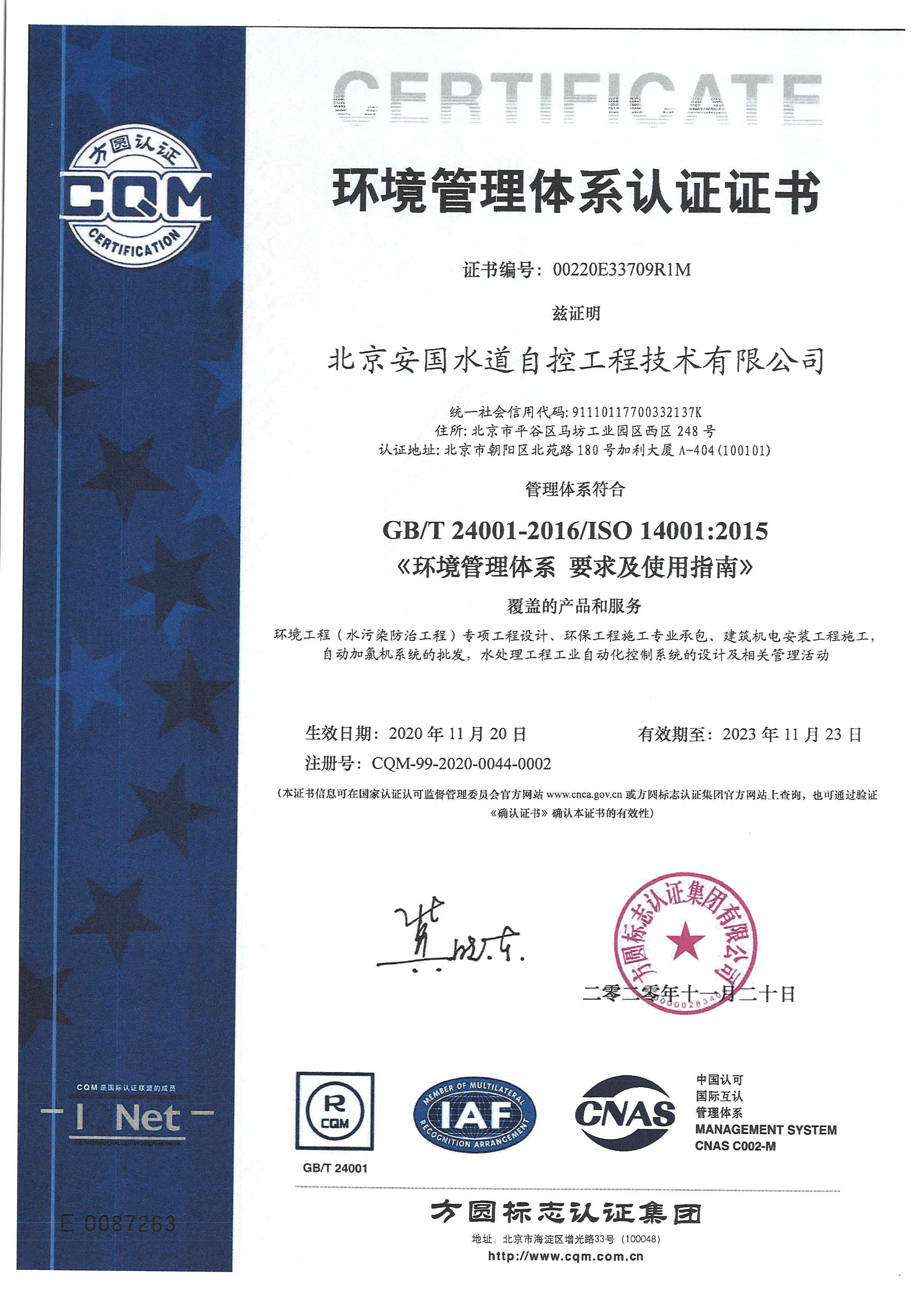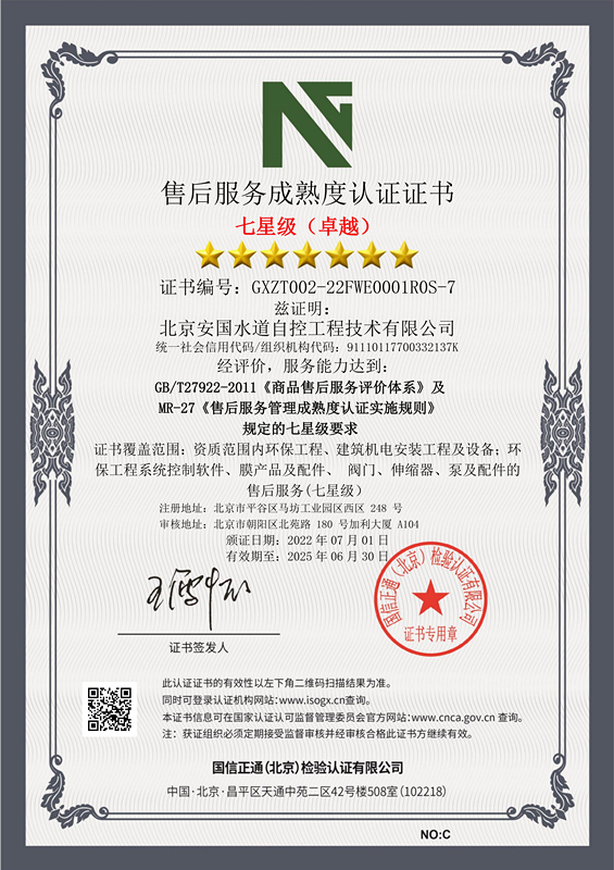 北京安國水道自控工程技術有限公司2015年入駐中國給水排水品牌委員會